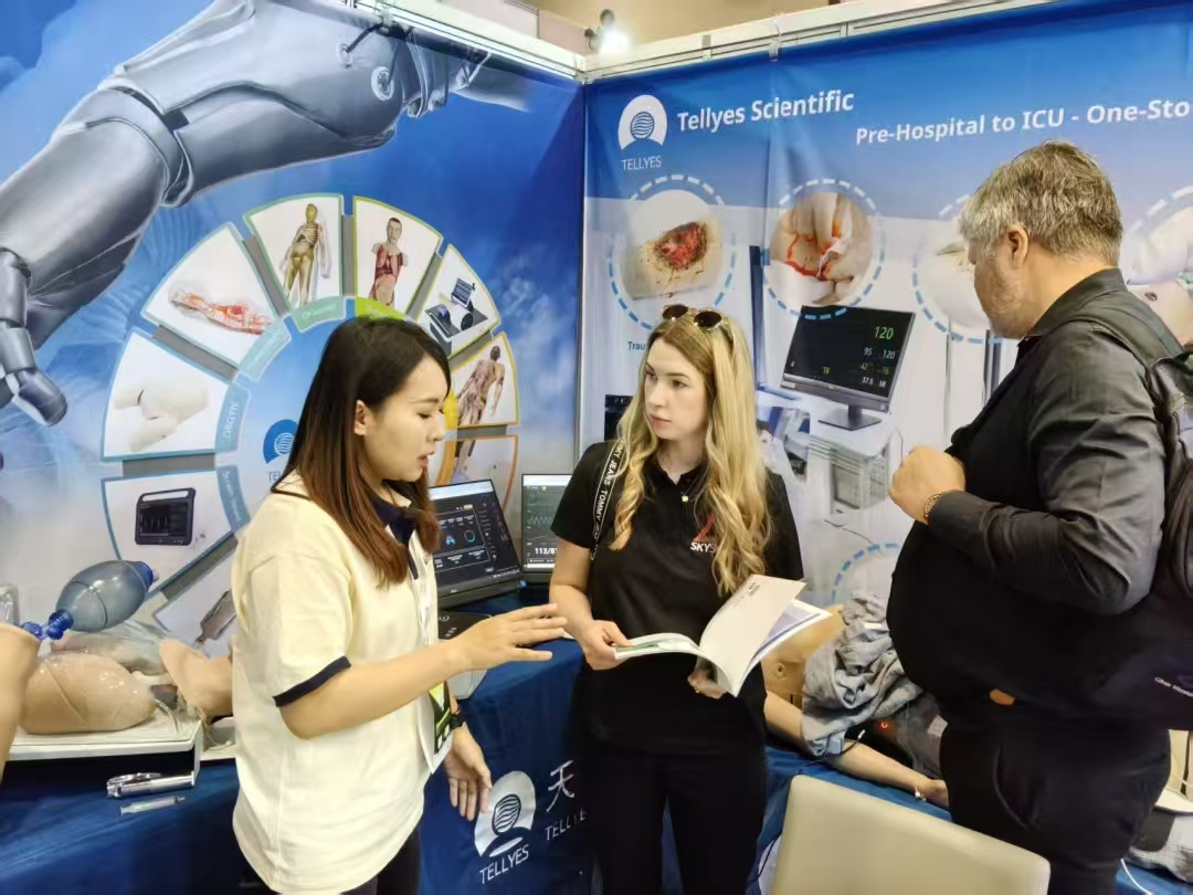 Tellyes team made a splendid appearance at Booth S3.B113, showcasing a range of high-end intelligent simulators including MULAN-Multifunction Patient Simulator, Althea Nursing, SP Brothers-Standardized Patient Brothers, Complete Childbirth Simulator (Twins), and DefibReady. On the very first day, our booth attracted over a hundred experts from more than 40 countries and regions for visits and hands-on experiences.
